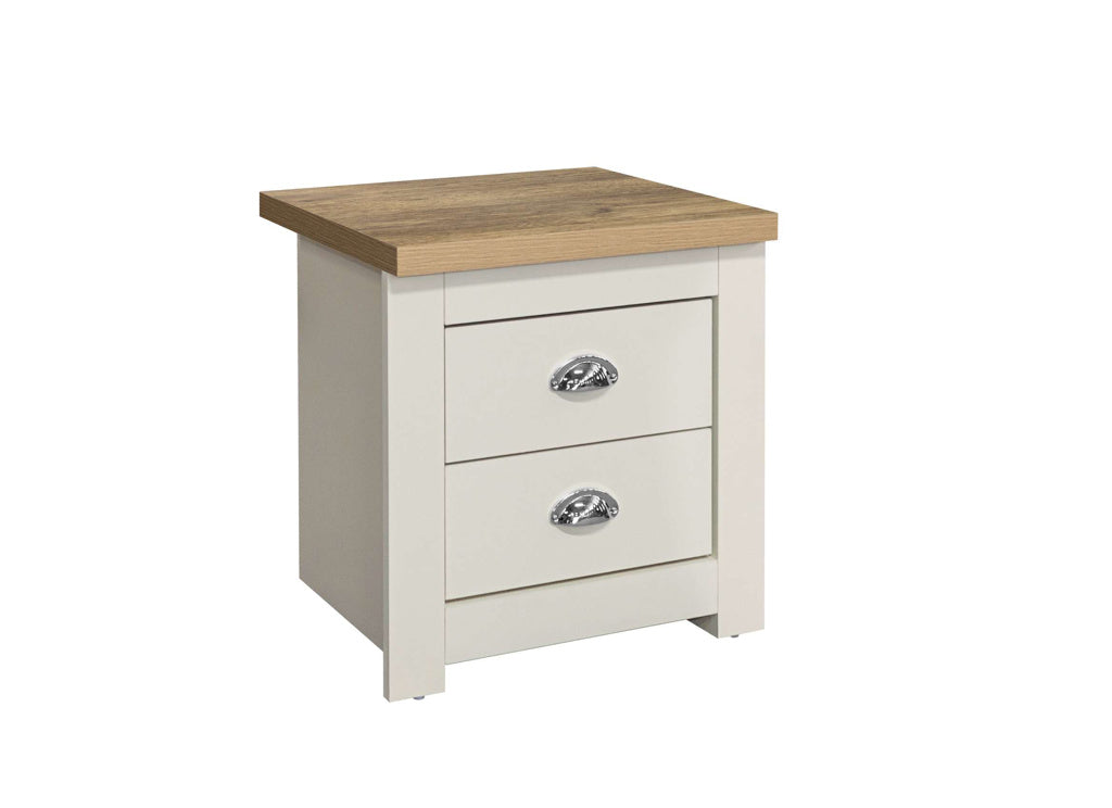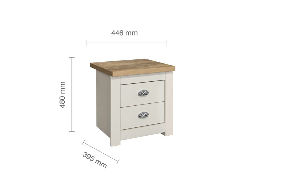 Classic farmhouse styling meets practicality. Designed to compliment both modern and traditional homes, the Highgate range is affordable and stylish. Available in three beautiful colours, cream & oak, grey & oak and navy & oak this range will suite a wide array of interiors. Featuring 2 spacious drawers, perfect for storing away any belongings, the Highgate 2 Drawer Bedside is beautifully finished with silver cup handles.