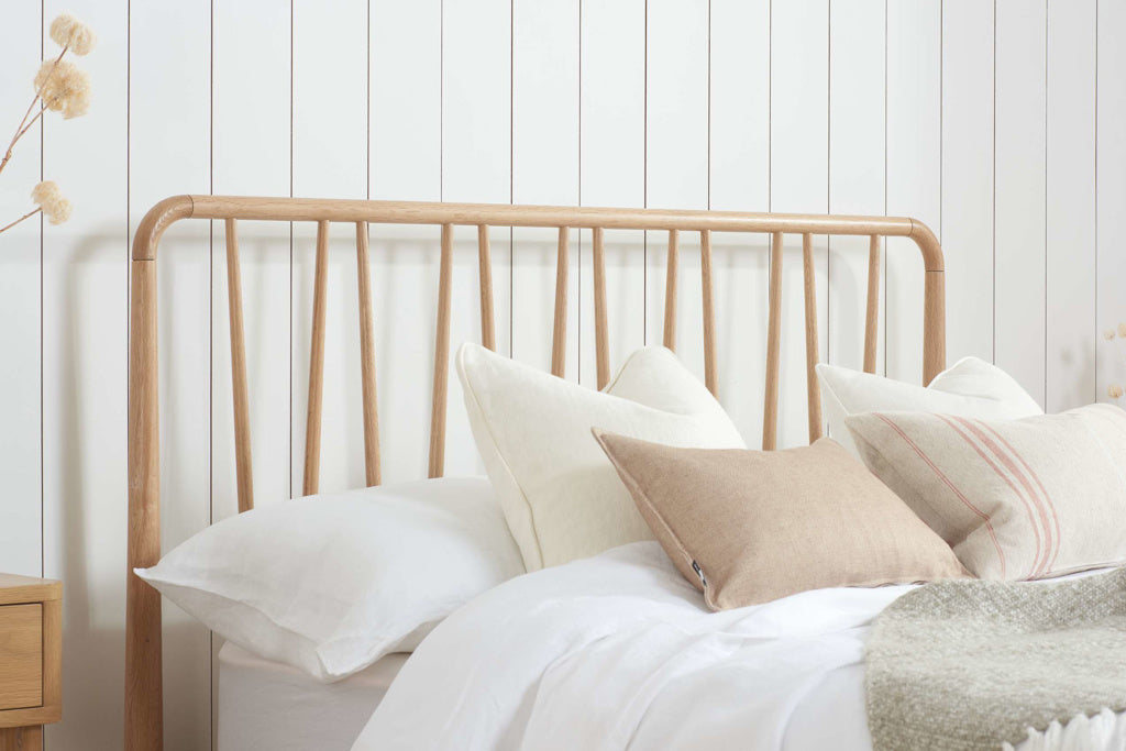 Boasting a unique style, the Jesper bed frame instantly adds a modern vibe to any bedroom. With its sleek oak finish, this neutral tone ensures the Jesper can fit in effortlessly with any bedroom colours scheme. Providing additional levels of comfort and support as you sleep, the Jesper features a solid slatted base. Ensuring the Jesper becomes a focal point of any bedroom, the eye-catching headboard features a simple yet striking patterned designThe Jesper frame features central support legs for support, if your desired room of choice has a non carpeted surface please ensure that you use some form of anti-slip protection and do not place directly on the wooden floor.