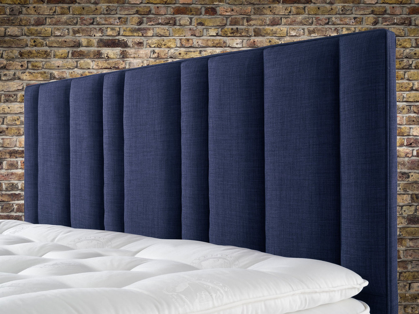 Showcasing a stunning contemporary design, the Harriet headboard by Hypnos adds a splash of modern style to any bedroom. There is a choice of either slim or wide fitting on this particular model, slim simply means it is the same width of the divan base, wide fitting means the headboard extends the width of the base 7. 5cm either side. Finding the perfect match for your colour scheme couldnt be easier with the Hypnos fabric selection, over 40 stunning options to choose from theres a colour for any decor. The featured headboard is upholstered in Brooklyn Ink. Standing at over 130cm tall, the Harriett headboard becomes a statement piece of any bedroom. Hypnos are so confident in the quality of their headboards that provide a 1 year guarantee.